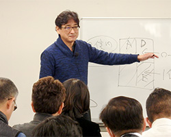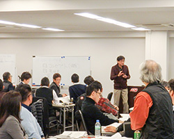 3日目は、コンサルティングのフレームワークを確認した後、前日出された課題(ケーススタディ)の対策案を各自持ち寄り、5~7名でのグループディスカッションにて活発な議論を行いました。前日行われた先生を依頼者に見立てた質問(力)もこのケーススタディの一つであり、課題を発掘し、最適案を提言するベースとなるものです。各グループにて対策案を纏めた後、各グループによるコンセプト・具体策の発表およびセレクトされた4グループのプレゼンテーションが行われ、質疑応答、講師講評をへて優勝グループを決めました。課題の明確化、適切なコンセプトの設定が決め手となったことは、実践にも生かしていけるところだと思います。![]() ![]() グループ討議風景 |